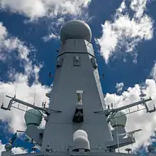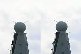 ![]() Композиционная фотография с интервалом между снимками менее одной секунды, демонстрирующая вращение антенны РЛС Sampson (2012) | |