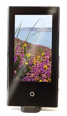 Подсоединяется к компьютеру с помощью специального кабеля через фирменный разъем к USB. Поддерживается MTP или UMS[2]. При подсоединении к компьютеру аккумулятор заряжается. Ёмкость встроенного Li-Pol аккумулятора составляет 830 мА·ч[2].