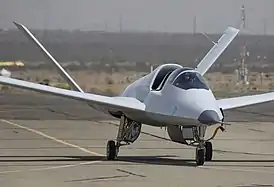 Самолёт представляет собой моноплан нормальной аэродинамической схемы с V-образным хвостовым оперением. Крыло стреловидное, с значительным углом поперечного V. В носовой части расположена одноместная кабина пилота. Двигатель находится в хвостовой части, а его воздухозаборник сверху за кабиной. В центральной части фюзеляжа имеются отсеки для размещения оборудования. Планер выполнен из композитного материала. Шасси убираемое трёхопорное с передней стойкой. Самолёт оснащён реактивным двигателем Pratt & Whitney Canada JT15D-5D.[1]