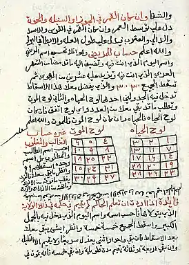 ![]() Две таблицы для определения, будет ли пациент жить или умрёт на основе числового значения его имени. Список 1264 года | |