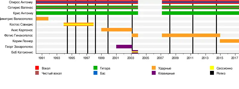 - Спирос Антониу — вокал, бас-гитара (1990—2003, 2007 — настоящее время)
