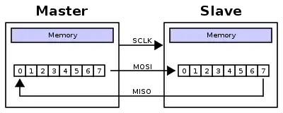 - тактовый сигнал SCLK от ведущего устройства воспринимается ведомым и вызывает считывание на входе MOSI значений передаваемых от ведущего битов и сдвиг регистра ведомого устройства.
