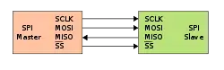 - SCLK или SCK — последовательный тактовый сигнал (англ. Serial Clock). Служит для передачи тактового сигнала для ведомых устройств.
