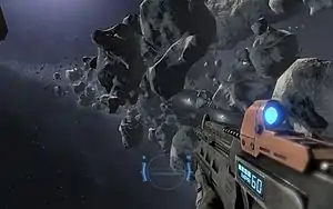 Единственным оружием в игре является футуристическая штурмовая винтовка «RK41-v MPAC» (MPAC —Multi-Purpose Assault Carbine), которая не имеет точного образца среди реально существующих штурмовых винтовок, но есть предположения, что она сделана по образцу реально существующего финского автомата RK-62, который используют силы обороны Финляндии. Буква «v» (vacuum) в названии оружия значит, что оно модифицировано для её использования в вакууме.[19] На винтовке установлен оптический прицел, что дает игроку возможность вести снайперский огонь. Автомат оснащен магазином на 60 патронов, при этом общее количество доступных патронов не ограничено. Один выстрел из винтовки в режиме взгляда через прицел моментально использует 10 патронов из магазина винтовки.