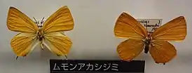 Размах крыльев 30—40 мм. Фоновая окраска крыльев обоих полов светло-оранжевого цвета, у самок со светло-коричневой внешней каймой. Задние крылья с хвостиком. Нижняя сторона крыльев у обоих полов тёмно-оранжевая с узкими пятнами и перевязью. Глаза с малозаметными волосками. Передние лапки самцов несегментированные[1].