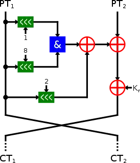 | Число раундов | 32, 36, 42, 44, 52, 54, 68, 69 или 72, зависит от размера блока и ключа |