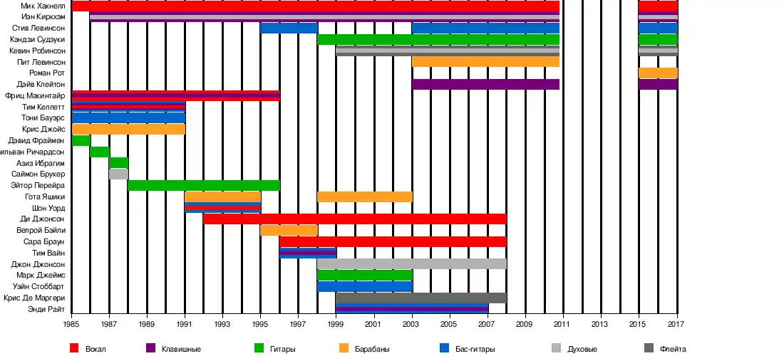 - Иэн Киркхэм — саксофон, клавишные (1986—2010, 2015)