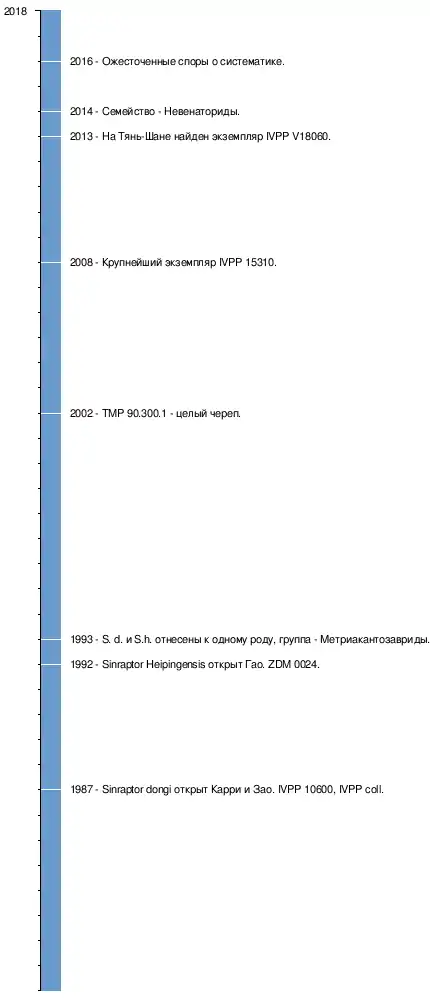 Домен: Царство: Подцарство: Без ранга: Без ранга: Тип: Подтип: Инфратип: Надкласс: Клада: Клада: Клада: Клада: Клада: Надотряд: Отряд: Подотряд: Клада: Надсемейство: Семейство: Род: † Sinraptor |