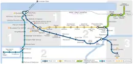 | Canada Line | 2009 | 14.4 km | 13 | Waterfront Station | Richmond-Brighouse | 25 мин | 7 мин | 7-20 мин | 3.5 мин | 3.5-10 мин |