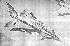 ![]() Эскиз усовершенствованного F-106 «Delta Dart» с двумя «Sky Scorcher» под крыльями. | |