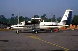 de Havilland Canada DHC-6 Twin Otter авиакомпании Skyline Airways в международном аэропорту Трибхуван, апрель 2001 года