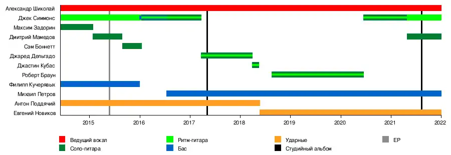 В декабре 2015 года группу покинули гитарист Ярослав Антоненко и бас-гитарист Филипп Кучерявых.
