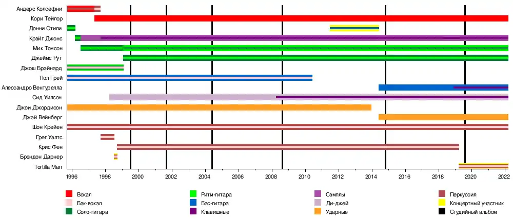 Сид Уилсон Джей Вайнберг Мик Томсон Крэйг Джонс Джеймс Рут Шон Крейен Алессандро Вентурелла Кори Тейлор |