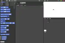 Спрайты, которые будут участвовать в сценарии, создаются с помощью встроенного простого графического редактора или выбираются двойным щелчком мыши из уже существующих в каталоге. Отдельные блоки можно перетаскивать из палитры на область сценариев, которая будет ассоциироваться с выбранным спрайтом.