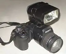 - DSC-R1 (2005—2006, 10,3 мегапикселей, трансфокатор 5x)[10][11]. Псевдозеркальный цифровой фотоаппарат с форматом сенсора APS-C.