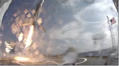 - Musk, Elon. Droneship is fine. No hull breach and repairs are minor. Impact overpressure is closer to a fast fire than an explosion. (англ.), twitter.com (15 April 2015).