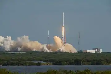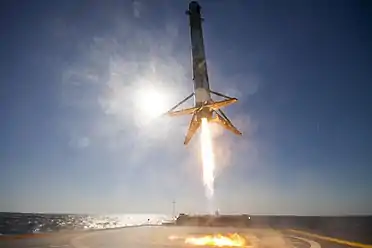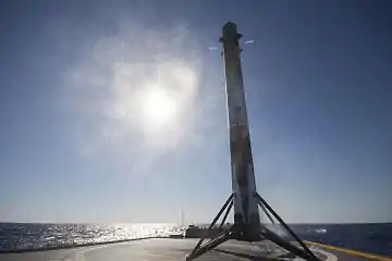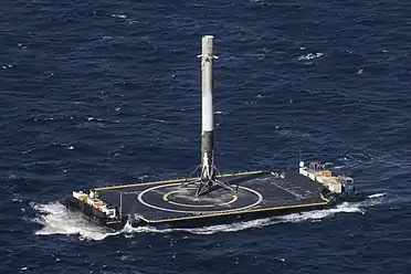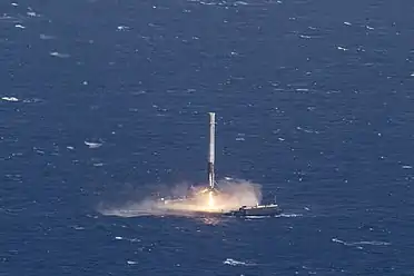 Первая ступень впервые совершила успешную посадку на плавающую платформу Autonomous Spaceport Drone Ship с названием «Of Course I Still Love You» через 8,5 минут после запуска с мыса Канаверал[4][16][17][18].