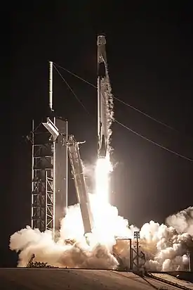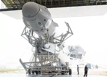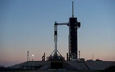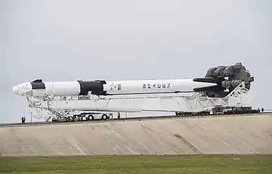 3 января 2019 года ракета-носитель Falcon 9 c установленным кораблём Crew Dragon впервые была поднята вертикально на стартовой площадке[6].