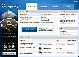 SpeedUpMyPC — условно-бесплатная утилита для ускорения работы компьютера за счёт оптимизационных работ, разработанная Uniblue Systems Limited.