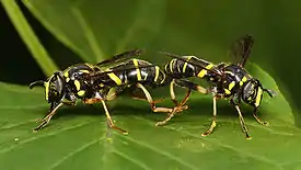 Крупные мухи похожие на складчатокрылых ос. Длина тела от 10 до 24 мм[1][2]. Глаза без волосков. Грудь с рисунком из жёлтых пятен и полос. Бёдра задних ног слегка утолщённые и изогнутые. Перед вершиной на нижней стороне бёдер имеется зубец[2].