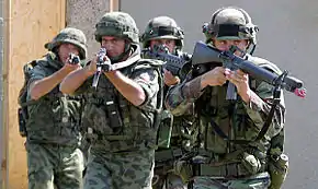 Во время Второй мировой войны болгарские десантники были оснащены камуфлированной формой в варианте Luftwaffen-Splittermuster 41. Его типичный квадратный вид с пунктирными линиями стал национальным камуфляжем Болгарии и постоянно развивался. Он носился как комбинезон[8] и как костюм из двух частей для десантников, пограничных войск и горно-стрелковых частей. У горной версии были большие накладки укрепляющих материалов на коленях, локтях, запястьях и плечах и чёрные накладки под руками, вокруг воротника и в промежности[9].