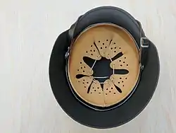 Подшлемник из восьми кожаных (иногда девяти) лепестков с отверстиями для вентиляции стягивался сверху кожаным шнуром (в процессе эксплуатации заменялся подручным материалом, например, обычными обувными шнурками). Шейный ремешок, предназначенный для фиксации шлема на голове, изготавливался из телячьей кожи. Рамочная пряжка надёжно фиксировала необходимый размер. Подшлемник и ремень крепились к специальному подпружиненному обручу-каркасу, что обеспечивало максимальный комфорт во время передвижения и в случае сильного удара. Парашютисты Люфтваффе использовали Stahlhelm M35 до 1936 года, тогда выяснилось, что стандартный M35 не подходил, либо он слетал с головы парашютиста при неплотно зафиксированном ремешке, либо вызывал удушье парашютиста при очень плотно зафиксированном ремешке. Также выступающие поля шлема при приземлении били в виски парашютиста.