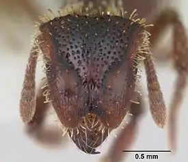 Усики 12-члениковые, булава из 3 члеников. Усиковые валики сильно выступающие, нависают впереди над клипеусом и основанием мандибул. Стебелёк между грудкой и брюшком состоит из двух члеников: петиолюса и постпетиолюса (последний четко отделен от брюшка), жало развито, куколки голые (без кокона)[1].