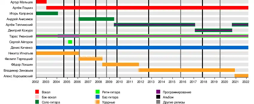 - Тарас Уманский — ритм-гитара, бэк-вокал, программирование (2001—настоящее время), соло-гитара (2004—2006)