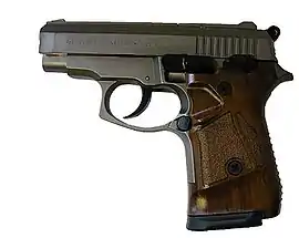 Пистолет имеет двухрядный магазин с перестроением в один ряд. Согласно закону об оружии его ёмкость не должна превышать 10 патронов, но фактически в него помещается 14, что обеспечивает большой боезапас при относительно небольших габаритах, но при этом увеличивает толщину рукоятки.