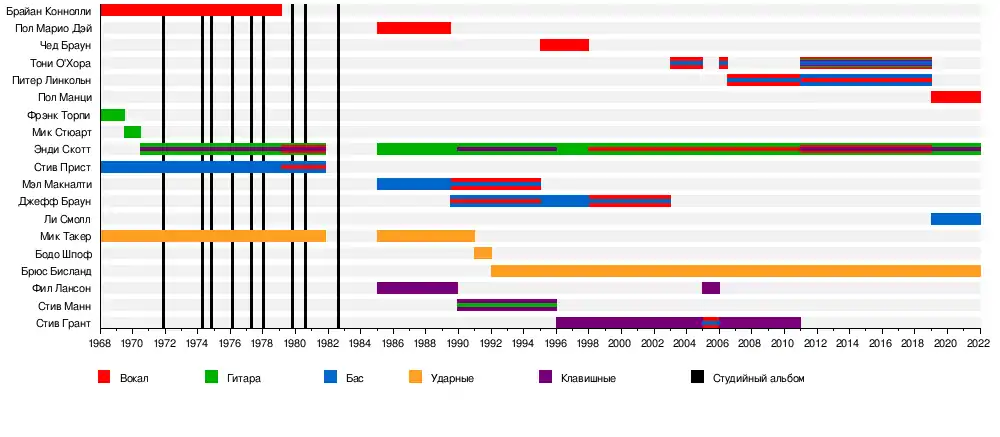 Брайан Коннолли Мик Такер Стив Прист Фрэнк Торпи Мик Стюарт Пол Дэй |