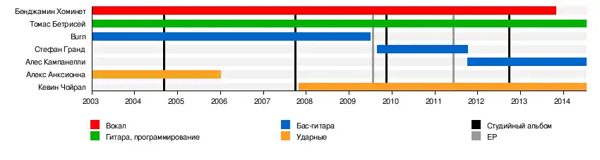 - Томас 'Drop' Бетрисей — гитара, программинг (2003-2014)