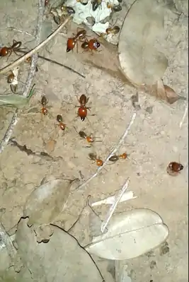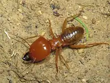 Солдаты. Голова большая, обычно короткая и широкая, иногда удлинённая; по бокам прямая, параллельная, или сходится к передней части; цвет головы жёлто-коричневый; волосистость головы переменная, от нескольких рассеянных до множества волосков, коротких и длинных. Фонтанелла короткая. Усики 19—21-члениковые. Лабрум трёхконечный с белой областью на срединной доле (лабральная железа неизвестной функции, вероятно, оборонительная). Жвалы большие и массивные, различной формы и зубчатости; левая мандибула с маргинальным зубцом (M1) обычно около середины, иногда ближе к основанию; второй маргинальный зубец (M2) маленький и расположен около основания; правая мандибула также с двумя маргинальными зубцами, они обычно менее развиты, чем на левой мандибуле, иногда рудиментарные или отсутствуют. Пронотум с крупной возвышающейся передней долей. Боковые края груди не угловатые, обычно без выступов, иногда с острыми или коническими шипами. Ноги обычно длинные; передние голени с многочисленными короткими щетинками на внутреннем крае[1].