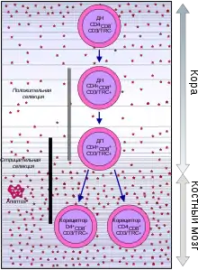 | История дифференцировки клетки | Гемопоэтические стволовые клетки → претимоциты → тимоциты |