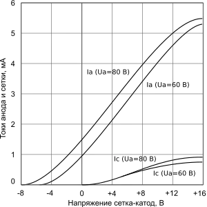 В типичном одноламповом радиоприёмнике времён Первой мировой войны на анод ТМ подавалось напряжение питания 40 В; при нулевом смещении на сетке ток анода составлял около 2 мА[20][22]. В этом режиме крутизна анодно-сеточной характеристики триода составляла 0,4 мА/В, внутреннее сопротивление — 25 кОм, коэффициент усиления (μ) равнялся 10[20][22]. При напряжении на аноде 160 В и смещении −2 В ток составлял 3…6 мА, при этом обратный ток сетки достигал 1 мкА[20][22]. Значительные токи сетки, облегчавшие смещение сеточным резистором, — следствие несовершенной технологии 1910-х годов[22].