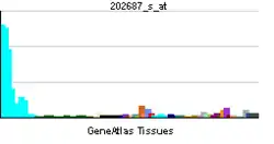 Цитокин широко представлен во многих тканях, наибольшая экспрессия наблюдается в селезёнке, лёгких и предстательной железе.