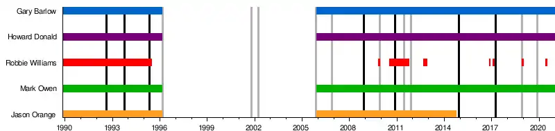 - Робби Уильямс (1990—1995, 2009, 2010—2011)