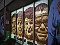 Четыре портрета жителей дома "Хузур". Tape Art (крупный план) берлинских художников "Ostap & Selfmadecrew". Установка из коричневой упаковочной ленты на окнах корпуса для инвалидов и малообеспеченных в Берлине. Четыре портрета жителей дома "Хузур". Проект сотрудничества Остапа и Urban Nation Berlin. 2017 год.
