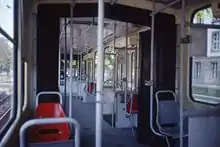 Сиденья пассажиров снабжены обивкой. Их размещение зависит от экспортного типа вагона. Для обеспечения безопасности стоящих пассажиров в пассажирском салоне вагона предусмотрены продольные и вертикальные поручни. Посередине каждого дверного проема, кроме последнего, также предусмотрен опорный поручень.