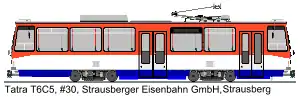 Тогда необычным вагоном заинтересовался перевозчик из немецкого города Штраусберг, где было необходимо обслуживание 6-километровой одноколейной линии без оборотных колец. До этого на линии использовали вагоны Tatra KT8D5, но учитывая их большую, чем нужно пассажировместимость, решились на покупку трамвая Т6C5. После изменения тележек на колею 1435 мм и очередных пробных поездок в Праге, вагон эксплуатируется в Штраусберге с 2003 года под номером 30.
