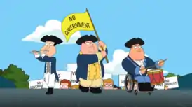 Народ выходит из домов, окружая местную администрацию и требуя распустить парламент. Мэр Адам Вест в итоге принимает решения именно так и поступить, говоря, что он — служитель народа. Забрав с собой одну из колонн администрации, Адам Вест уходит. Народ радуется победе. Однако радость длится недолго — Гриффины, сидя дома, обнаруживают, что из труб предприятия Картера Пьютершмидта валит дым, загрязняющий атмосферу. Брайан оказался прав: пожаловаться больше некому, электричества нет, воды нет, мусор не вывозится уже давно — в городе царит хаос, беспорядок, преступность.