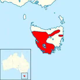 | Ареал T. truncata на карте Тасмании | ||||||||||