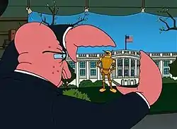 - Когда Гарольд Зойд в его фильме погибает, появляется Зойдберг и произносит такие слова: «Президент мёртв… Мои поздравления, мистер президент». Это отсылка к известной французской фразе «Король умер. Да здравствует король!».