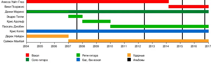 - Алисса Уайт-Глаз — вокал (2004–2014)