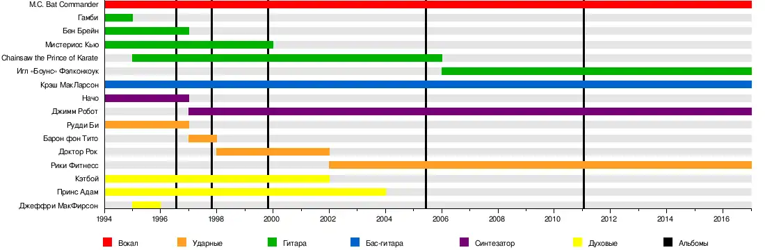 - The M.C. Bat Commander (Кристиан Джейкобс) — вокал (1994—настоящее время)
