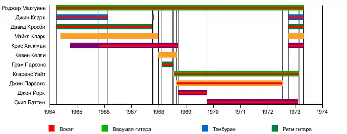 - Дэвид Кросби — вокал, гитара (1964—1967,1972-1973, 1989—1991, 2000)