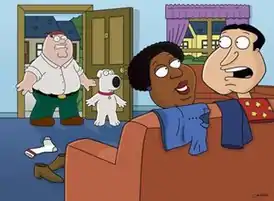 - Сцена между Кливлендом и Куагмиром в автоматической прачечной — пародия на шоу «Saturday Night Live».