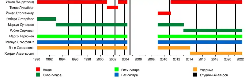 - Йохан Линдстранд — вокал (1990–2001, 2002–2004, 2011–наши дни)