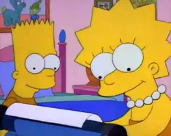 Барт и Лиза печатают свои идеи для мультфильма | |