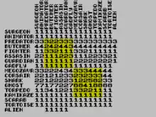Бои в игре происходят между двумя роботами-юнитами в автоматическом режиме. Когда два робота дерутся, они по очереди наносят друг другу удары до тех пор, пока один из них не будет уничтожен. Сила каждого удара — случайное число от нуля до числа из таблицы (на илл.). Таким образом, естественным образом формализованы понятия, известные из текстовых описаний: deep-water bombing system y shark inhuman, photon torpedo y ghost mortal, laying system y fighter burglar и т. п.[2]