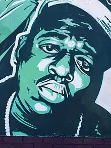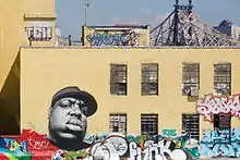 На Фултон-стрит в Бруклине, в полумиле к западу от старого квартала Уоллеса, есть большая фреска с портретами Уоллеса[111]. Поклонник ходатайствовал, чтобы угол Фултон-стрит и Сент-Джеймс-Плейс, рядом с домом детства Уоллеса, был переименован в его честь, получив поддержку от местного бизнеса и собрав более 560 подписей[111].